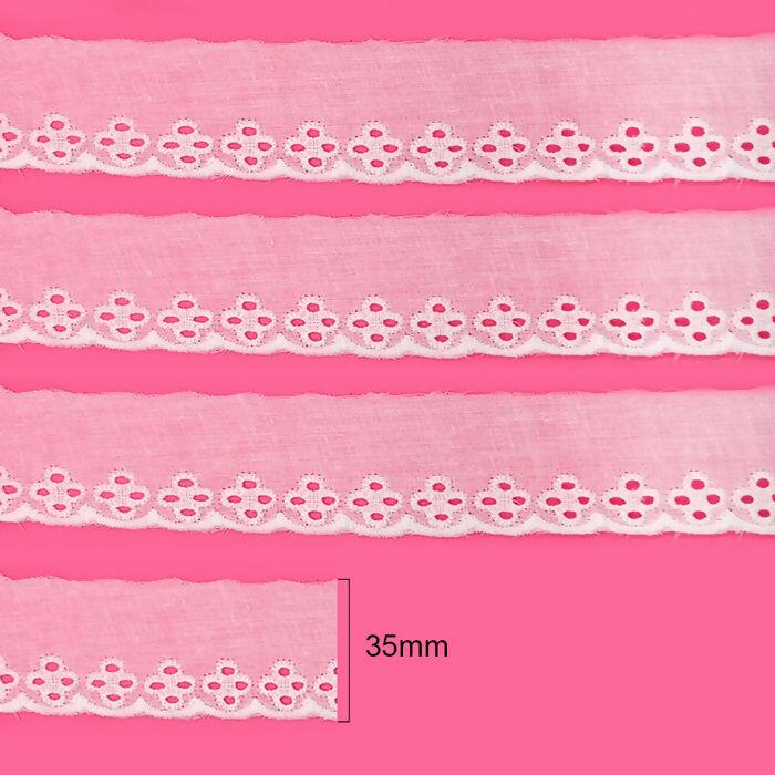 Bordado Inglês de Algodão - 35mm x 13,7m - Branco 101 - CAL-11/35