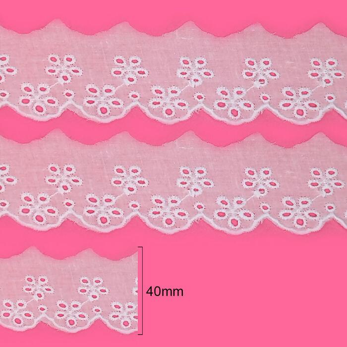 Bordado Inglês de Algodão - 40mm x 13,7m - Branco 101 - CAL-12/40