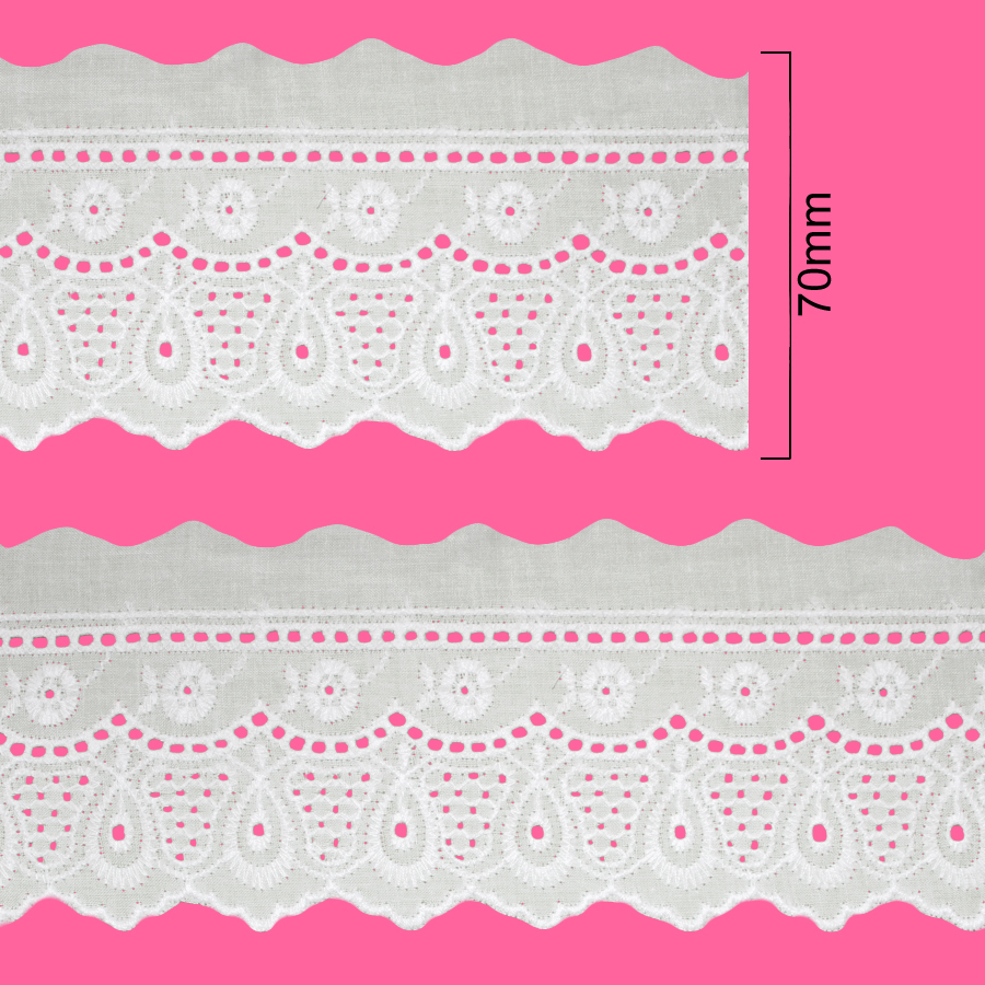 Bordado Inglês de Algodão - 7cm x 13,7m - Branco - 107895