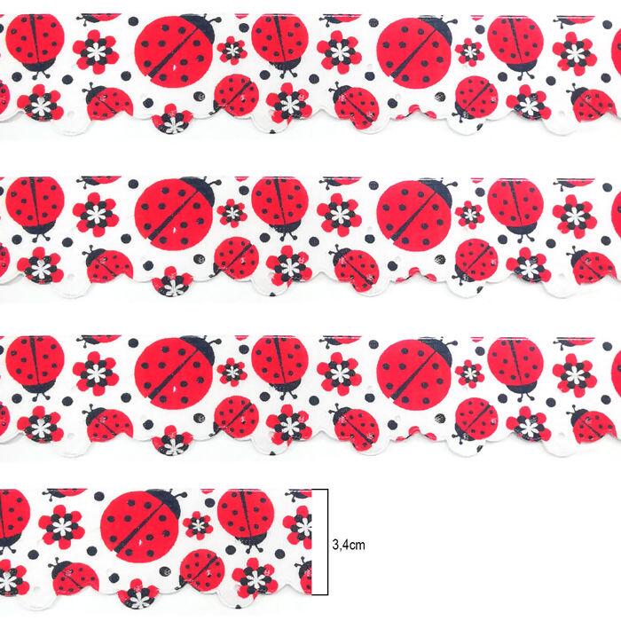 Descrição Bordado Marilda - 3,4cm x 10m - Mod.93 - Joaninha - 1085