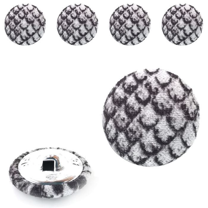 Botão encapado perfeito para roupas de inverno, super confortável e com toque aveludado. Possui base de alumínio para aplicação, facilitando o encaixe e aumentando a durabilidade do botão.