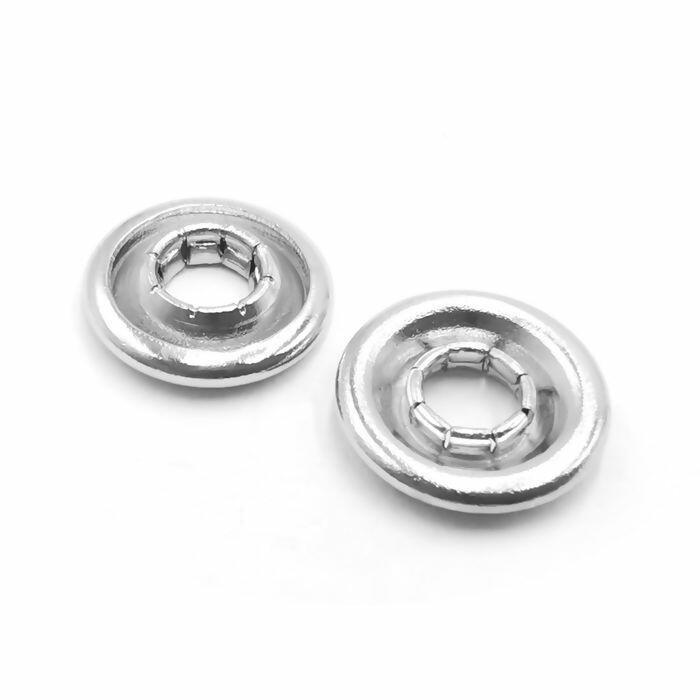 Um botão de pressão suave, conhecido como botão tic-tac de metal. Ideal para ser usado em roupas infantis e também em tecidos leves.