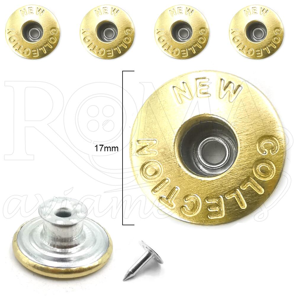 Descrição Botão Flexível New Collection - Jeans - Coroa - 50 unidades - Dourado - 17mm - GBJF 085