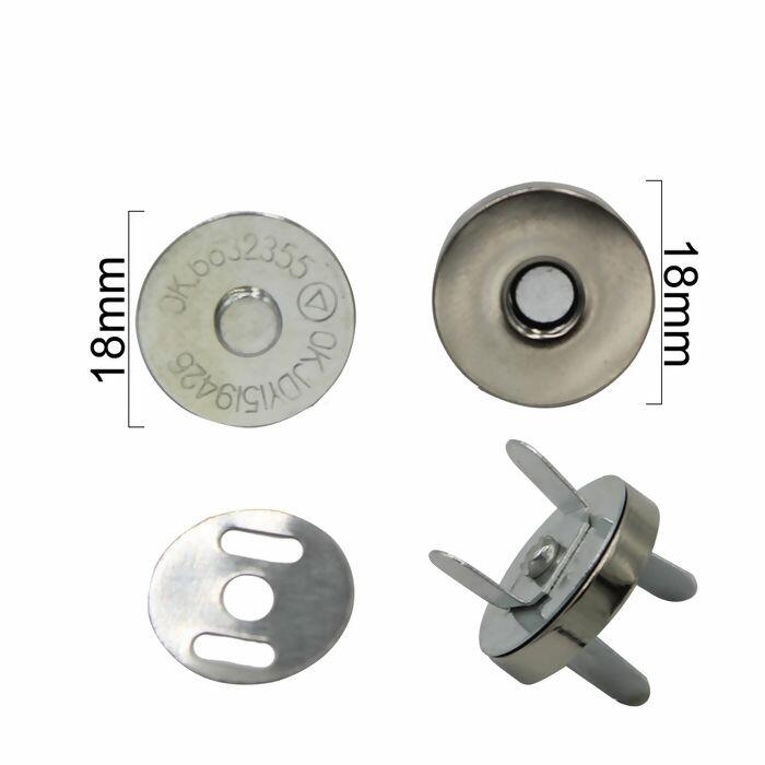 Cada conjunto contém 100 botões de imã com diâmetro de 18mm, oferecendo um fechamento magnético seguro e confiável para seus projetos de costura e artesanato.