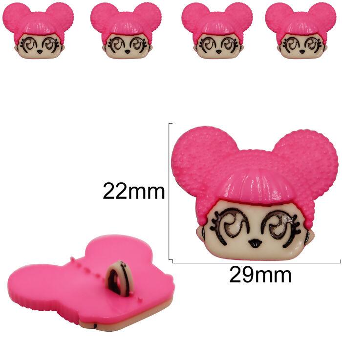 Botão infantil - 25 unidades - Boneca - 6143 - Rosa Fluorescente e Creme - 019905