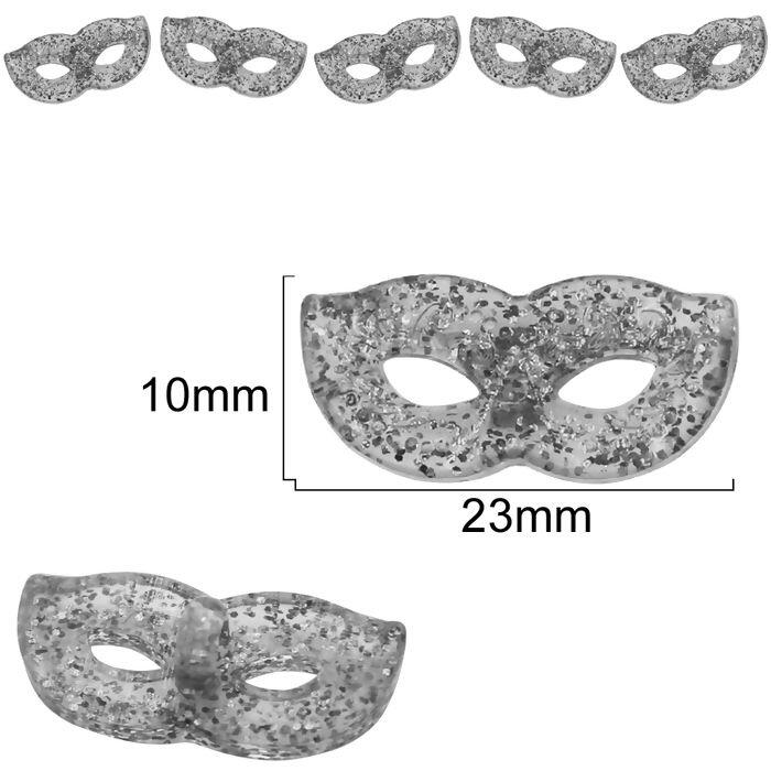 Botão infantil - 25 unidades - Máscara - 6142 - Glitter - Prata - 014554