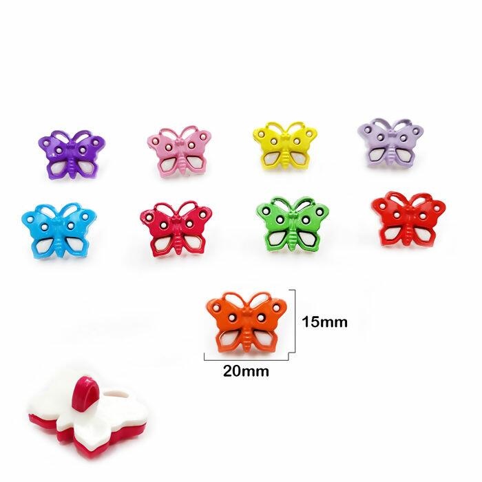 Botão infantil borboleta - 25 unidades - 15mm x 20mm - Sortido - 6039