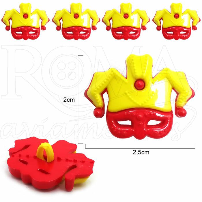Botão Infantil de Máscara Carnaval - 25 unidades - Vermelho / Amarelo - 3,5cm x 2,5cm - 1045