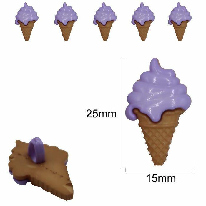 Descrição Botão Infantil Sorvete 6121 - 25mm x 15mm - 25un - Creme e Lilas