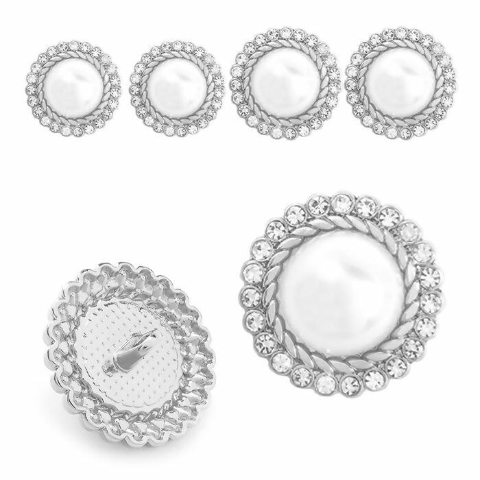 Descrição Botão Metal com Pérola e Strass - 10 unidades - Prata - ROFR.151897