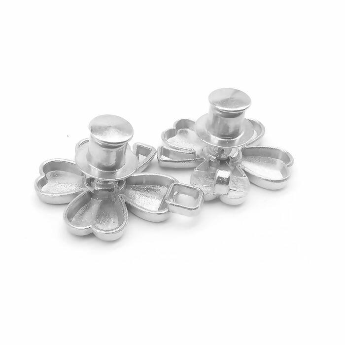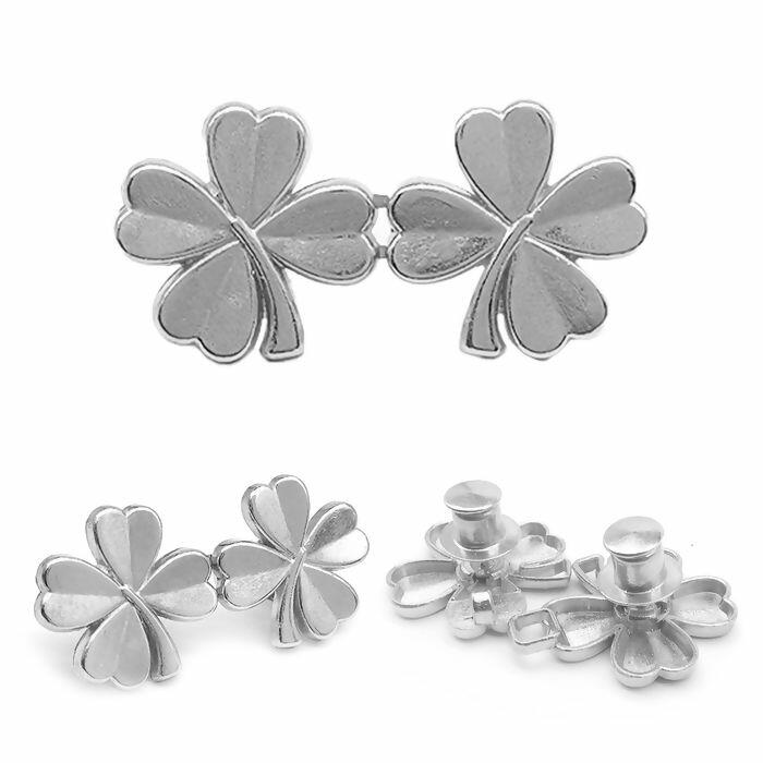 Botão regulável para cintura Trevo de quatro folhas 4,5cm x 2cm 10 pares Níquel RO.153903