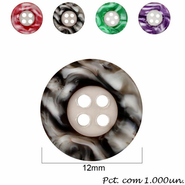 Descrição Botão resina - 4 furos - 12mm - 1.000 unidades - RO.80180 - 26548
