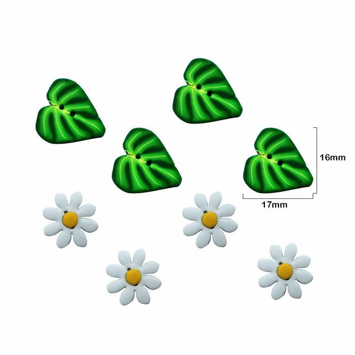 Botões artesanais - Kit B315 - 10 unidades - Margaridas e Folhas - 077600