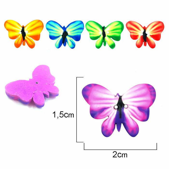 Descrição Botões artesanais - Veceli - 10 unidades - Borboletas rajadas/Multi - 36835