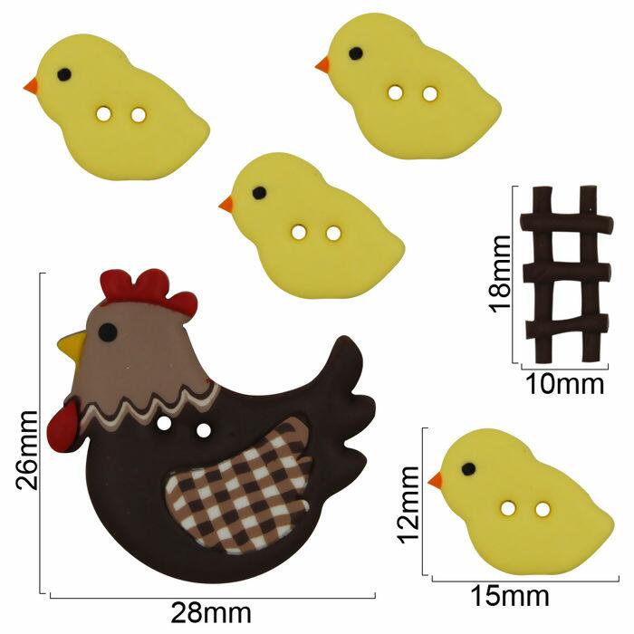 Botões artesanais Kit B33 galinha pintinho pct. com 6 botões - 24719
