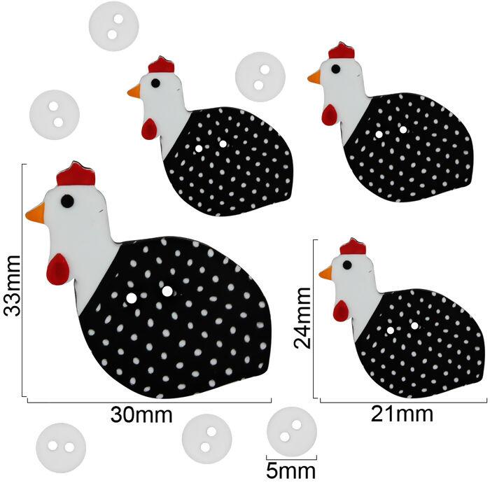 Descrição Botões artesanais Kit B35 galinha d'angola pct. com 10 botões - 24721
