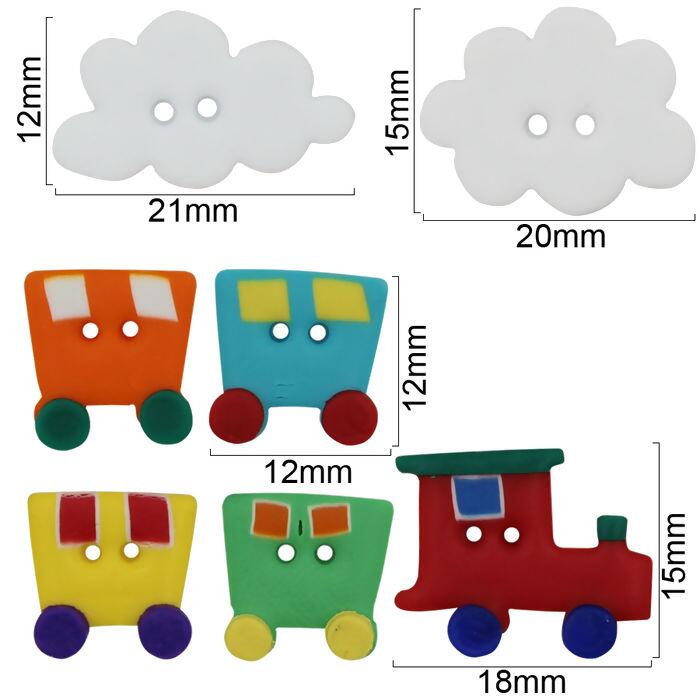 Descrição Botões artesanais Kit B47 trenzinho pct. com 7 botões - 24733