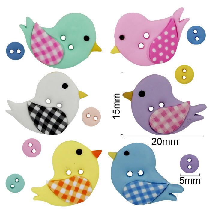 Botões artesanais Kit B52 pássarinhos claros pct. com 13 botões - 24736