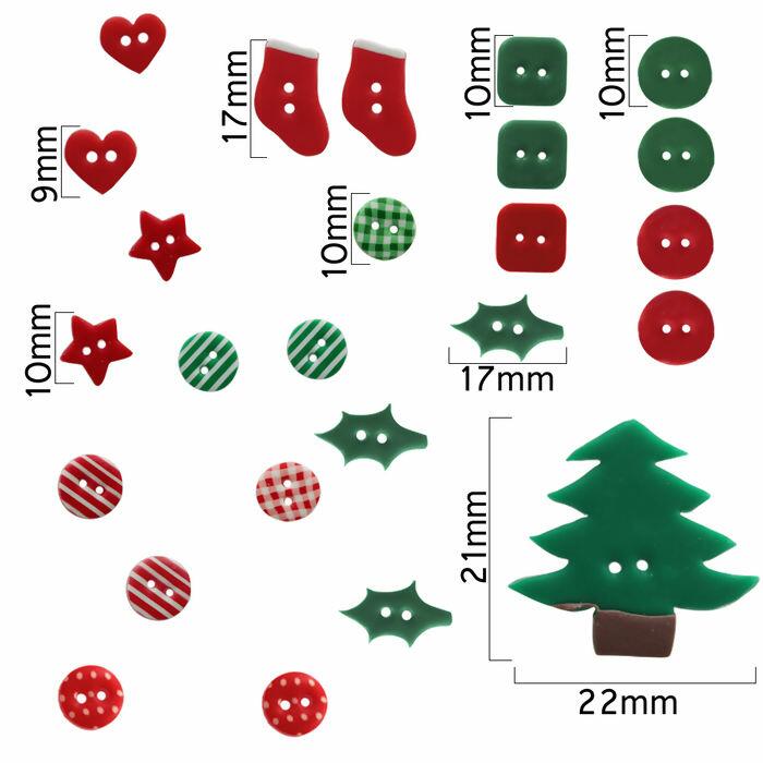 Descrição Botões artesanais Kit BT101 mix natal verde/ vermelho pct. com 25 botões - 34611