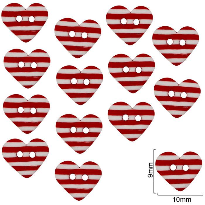 Botões artesanais Kit BT22 coração listras vermelhas pct. com 14 und. 10mm - 24787
