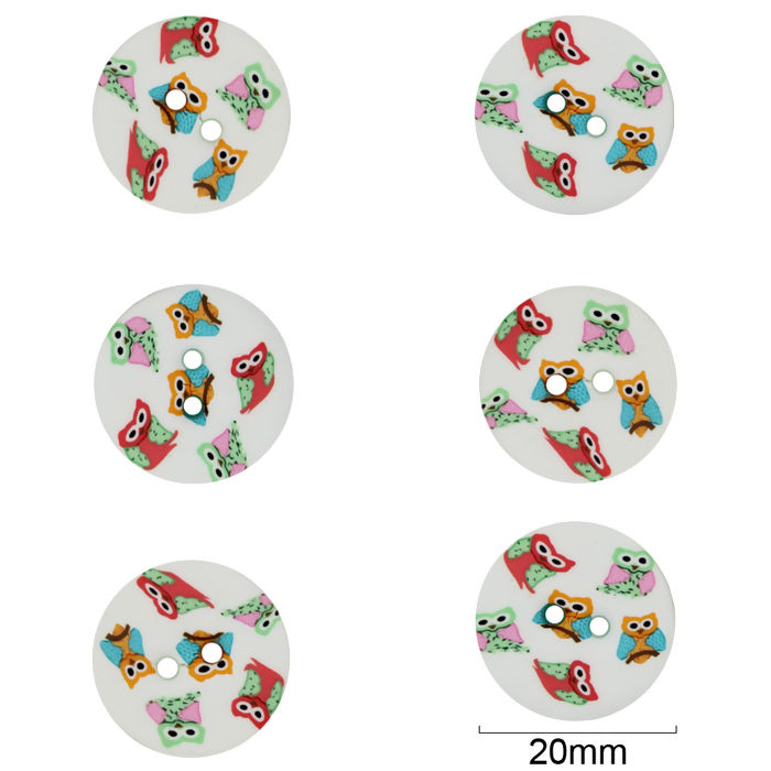 Descrição Botões artesanais Kit BT3 redondo corujas pct. com 6 und. 20mm - 24710