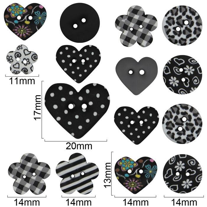 Botões artesanais Kit KT03 compose preto pct. com 15 botões - 24760