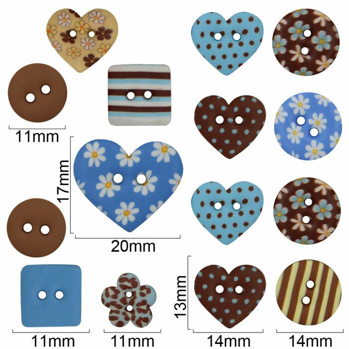 Descrição Botões artesanais Kit KT21 compose Azul/marrom pct. com 15 botões - 24775