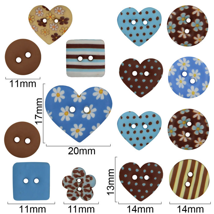 Botões artesanais Kit KT21 compose Azul/marrom pct. com 15 botões - 24775
