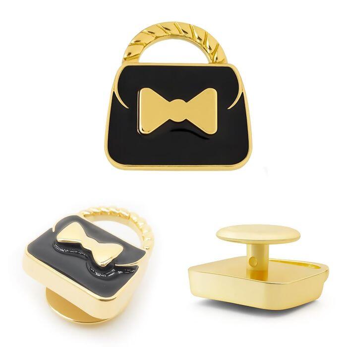 O boton decorativo para Crocs em formato de bolsa é perfeito para quem ama acessórios cheios de estilo e sofisticação. Com design moderno, ele combina dourado brilhante com detalhe preto esmaltado, além de um laço central elegante que dá um toque fashion e delicado ao visual.