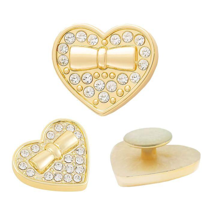 Boton Jibbitz para Crocs Coração Dourado com Laço e Strass RO.154811