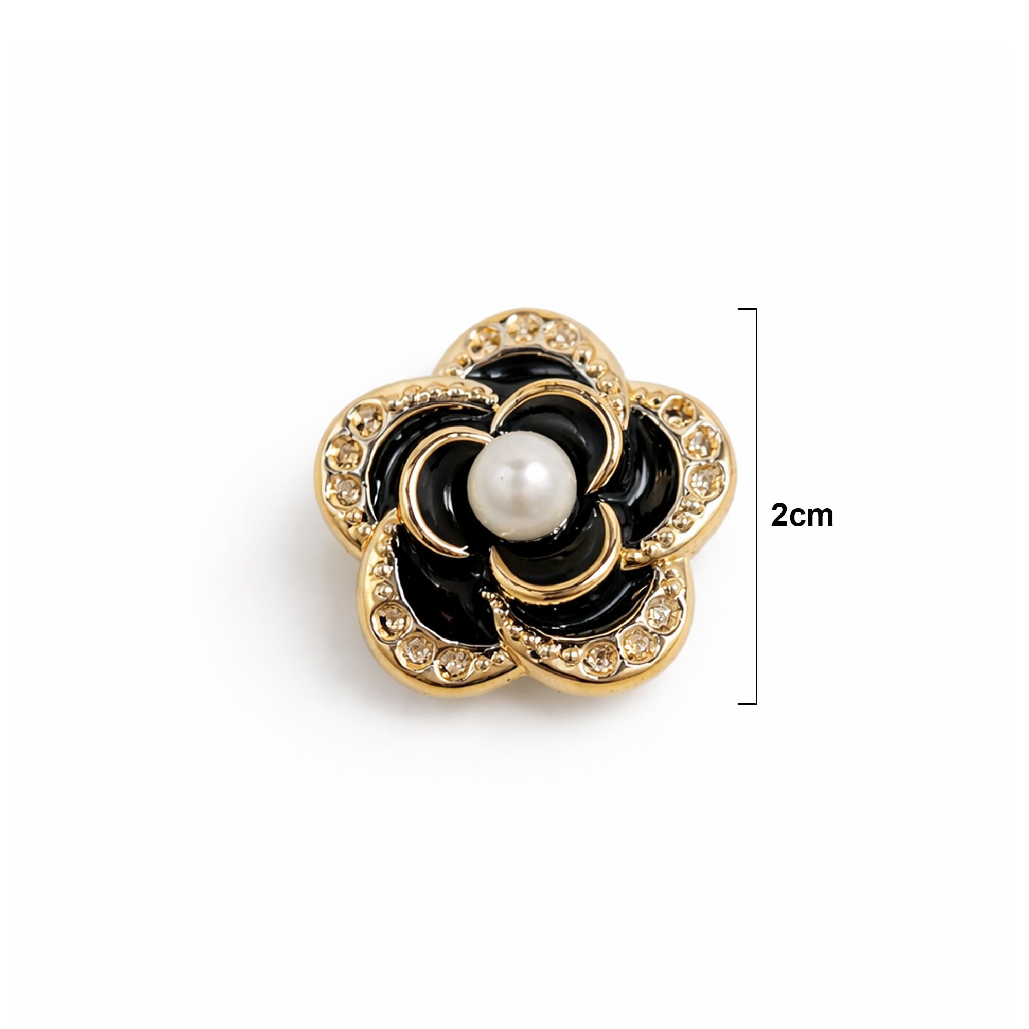 Descrição Botton Jibbitz Flor para Crocs 2cm 100 unidades Dourado e Preto RO.155003