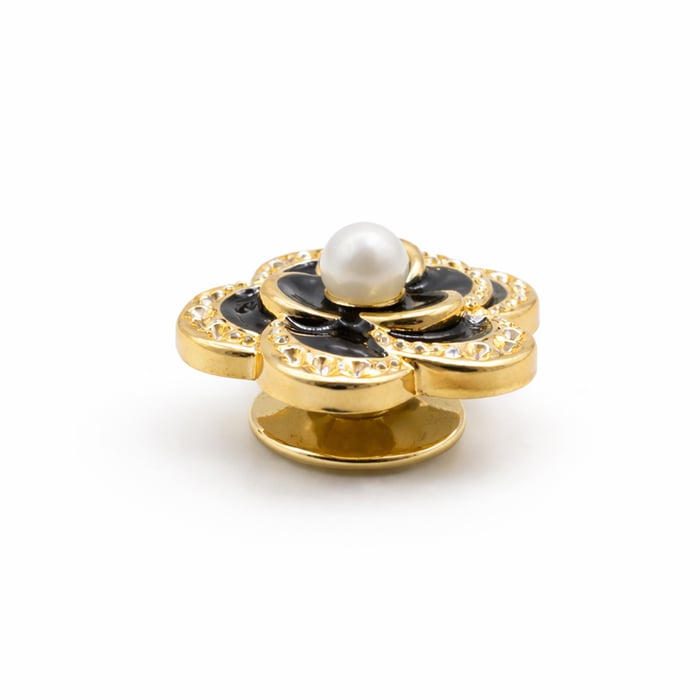 O botton para Crocs, Jibbitz flor luxo e aplique decorativo para chinelo é aquele modelo que eleva o nível do produto. Com pérola central e detalhes em strass, ele entrega um visual sofisticado que chama atenção na vitrine e no pé.