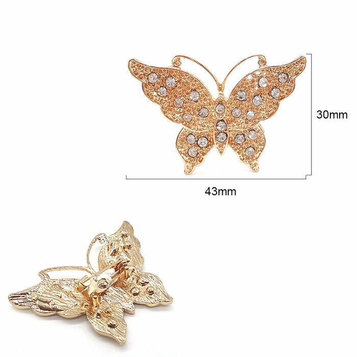 Descrição Broche Borboleta com Strass - 30mm x 43mm - Dourado - RO.151766