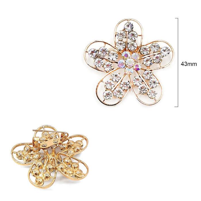 Descrição Broche Flor com Strass - 43mm x 43mm - Dourado - RO.151480