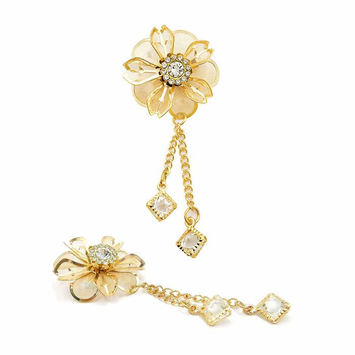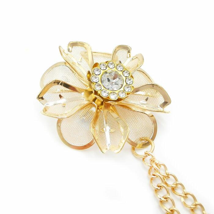 Detalhe Broche Flor com Strass - 9cm x 3,5cm - Dourado - RO.152167