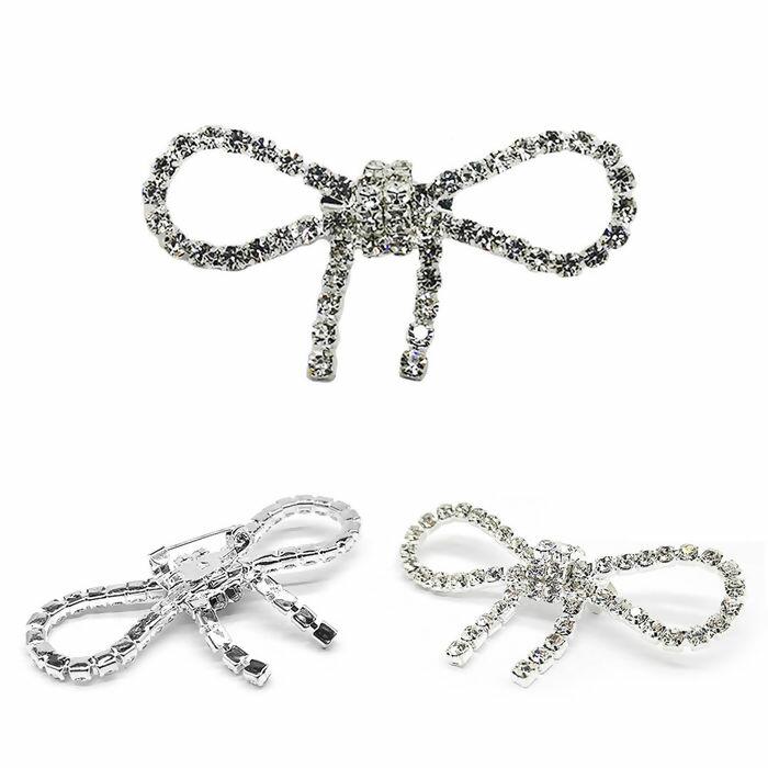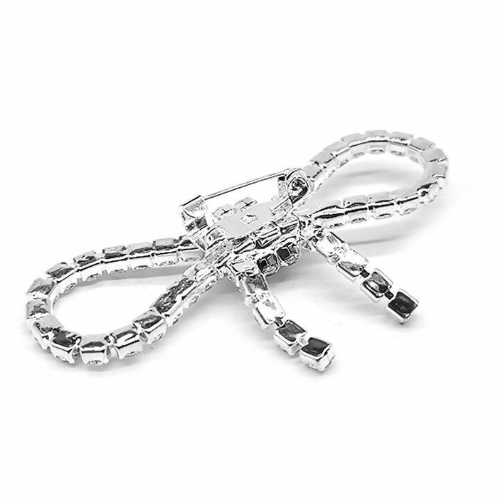 Descrição Broche Laço com Strass - 30mm x 54mm - 1 unidade - Níquel - RO.153695