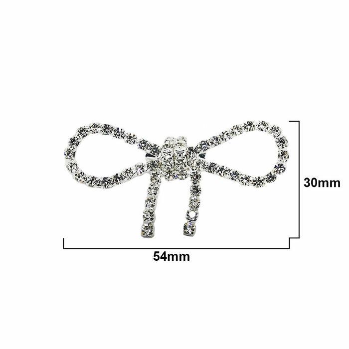 Broche Laço com Strass - 30mm x 54mm - 1 unidade - Níquel - RO.153695