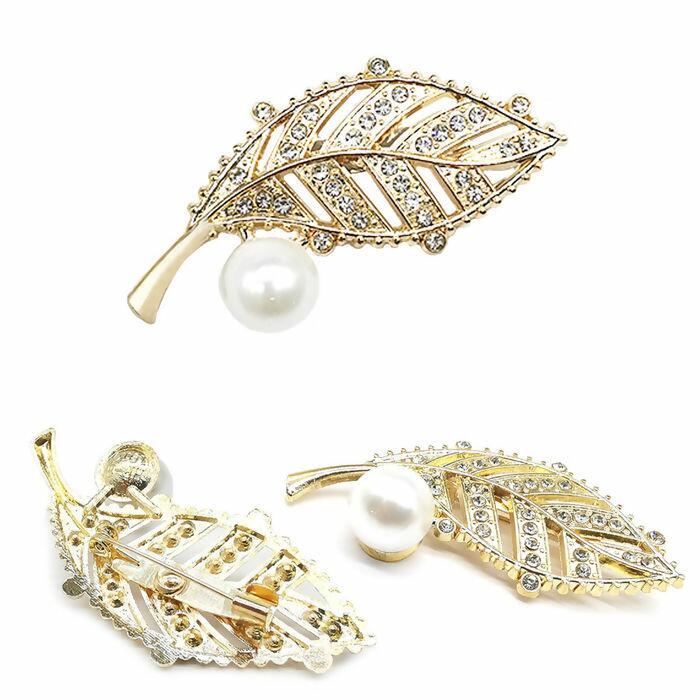 Descrição Broche Pérola com Strass - 55mm x 33mm - Dourado - RO.153689