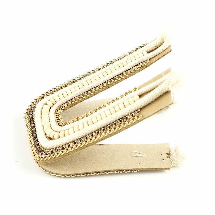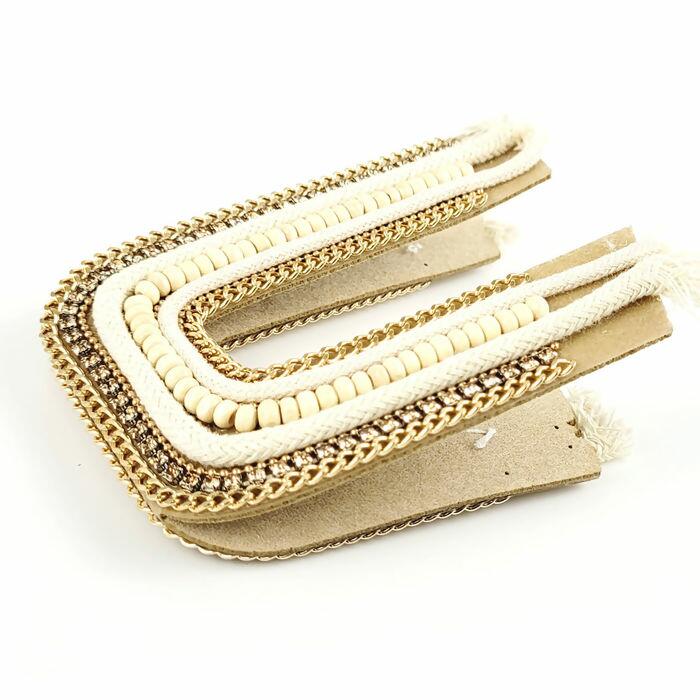 O Cabedal possui um formato em U, possui pedrarias de strass, correntes, cordões e muito mais. Fácil de ser aplicado.