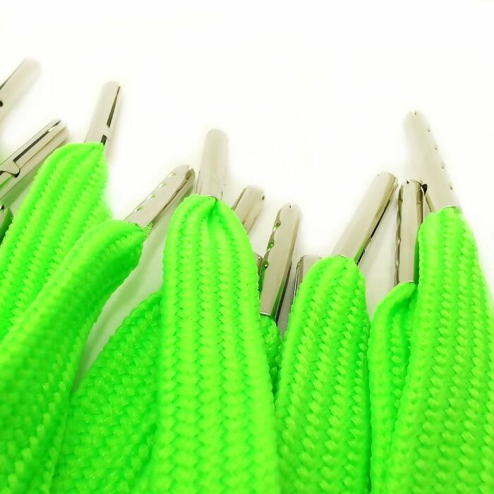 Detalhe Cadarço Chato com Ponteira de Metal Roliço - 10mm x 1,3m - Verde Fluor - RO.151748