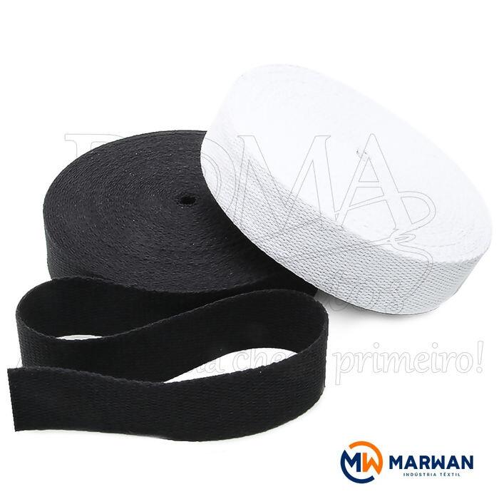 Aqui na Roma Aviamentos você encontra Cadarço Alça de Algodão MW-440 - 40mm x 20m marwan para confecção de bolsas, cintos, mochilas e muito mais. São alças de alta resistencia, rigídas e com a trama muito bem trabalhada, vai agregar muito no seu artesanato ou confecção.