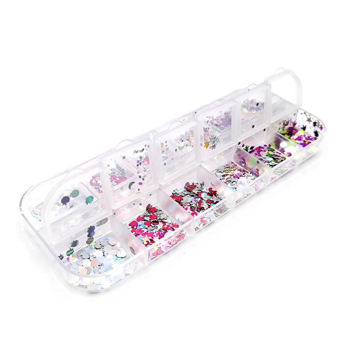 Descrição Caixa Mini Aplique - 12 espaços - Sortido - RO.151991