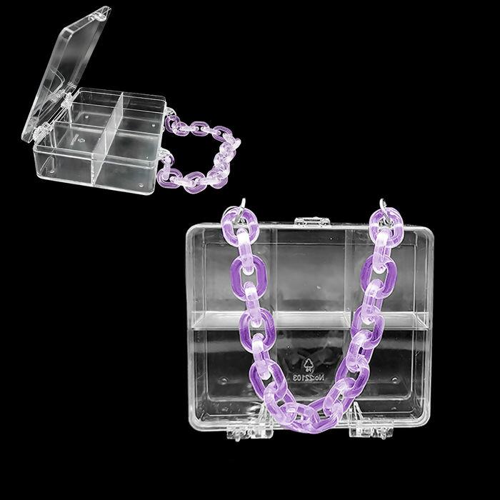 Detalhe Caixa organizadora - 10,5cmx9cm - Transparente/Lilás- RO.152549