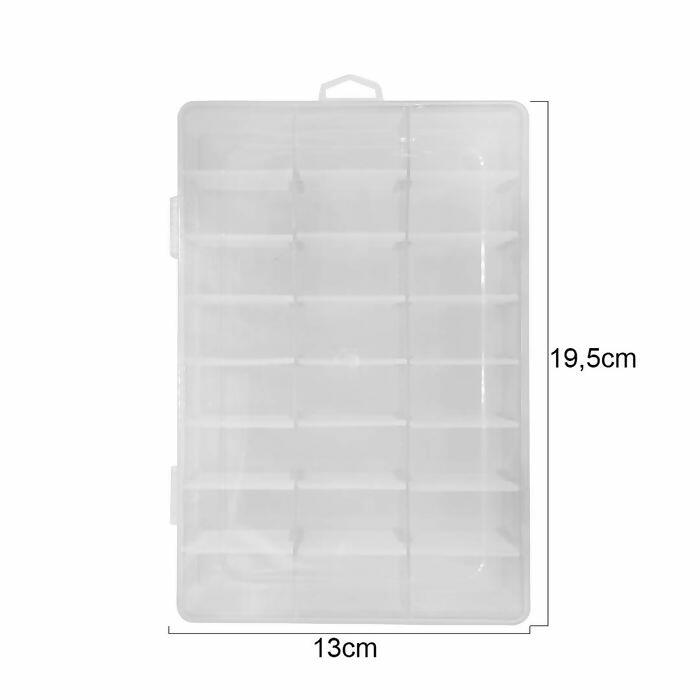 Ideal para guardar e organizar, pérolas, botões, linhas, alfinetes e outros materiais pequenos.