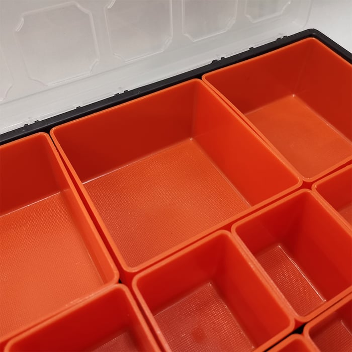Com divisórias internas, ela permite separar pequenos itens com facilidade, evitando bagunça e perda de peças. Ideal para uso profissional ou doméstico.