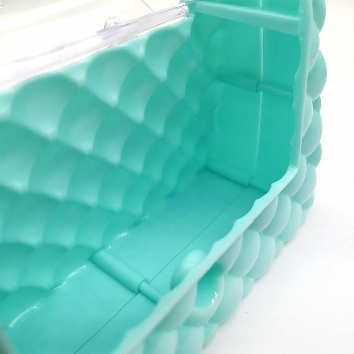 A Caixa Organizadora Bolsa é um item de armazenamento compacto e prático, ideal para guardar e organizar materiais pequenos, como pérolas, botões, linhas e alfinetes. A caixa é feita de plástico e tem uma cor vibrante.