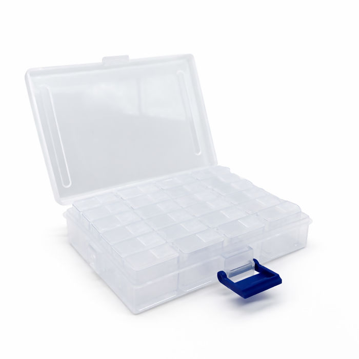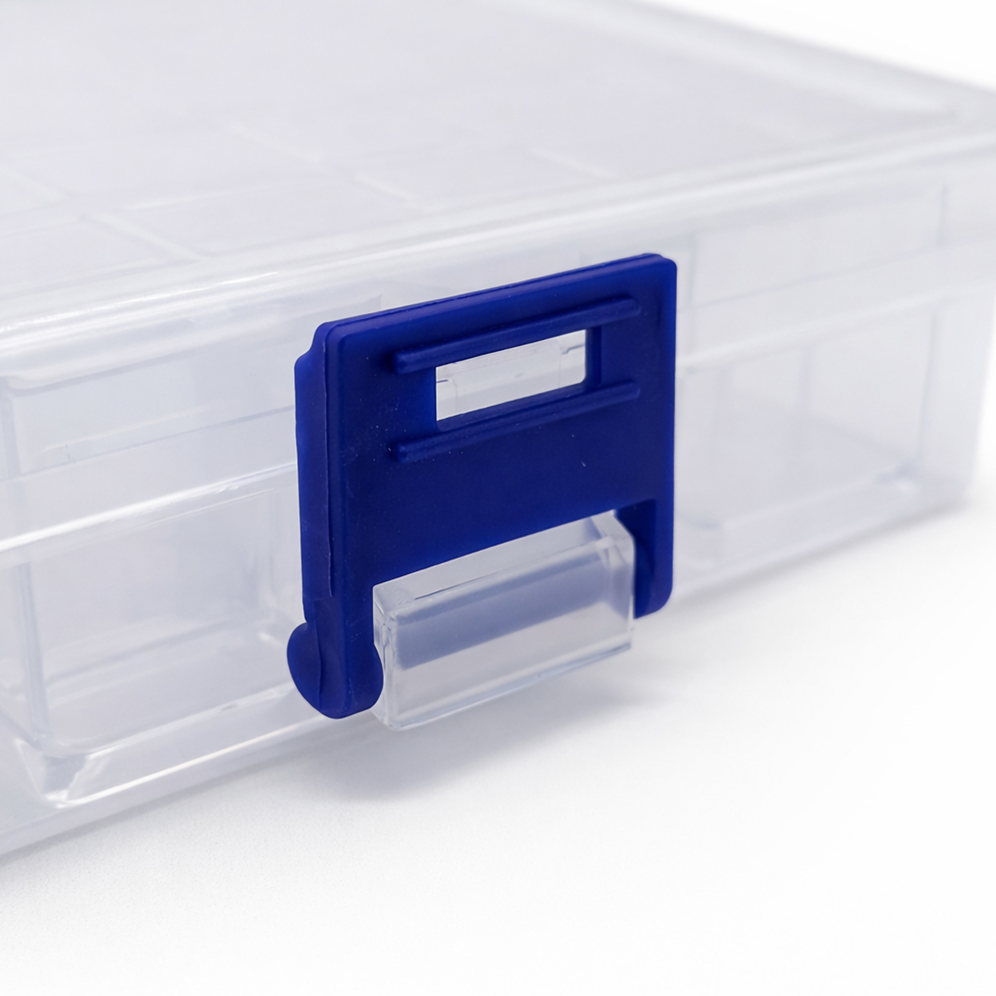 Produzida em 100% acrílico resistente, possui tampa articulada com fecho seguro, garantindo proteção e facilidade no manuseio. Transparente, facilita a identificação rápida do conteúdo — organização inteligente que agiliza o dia a dia.