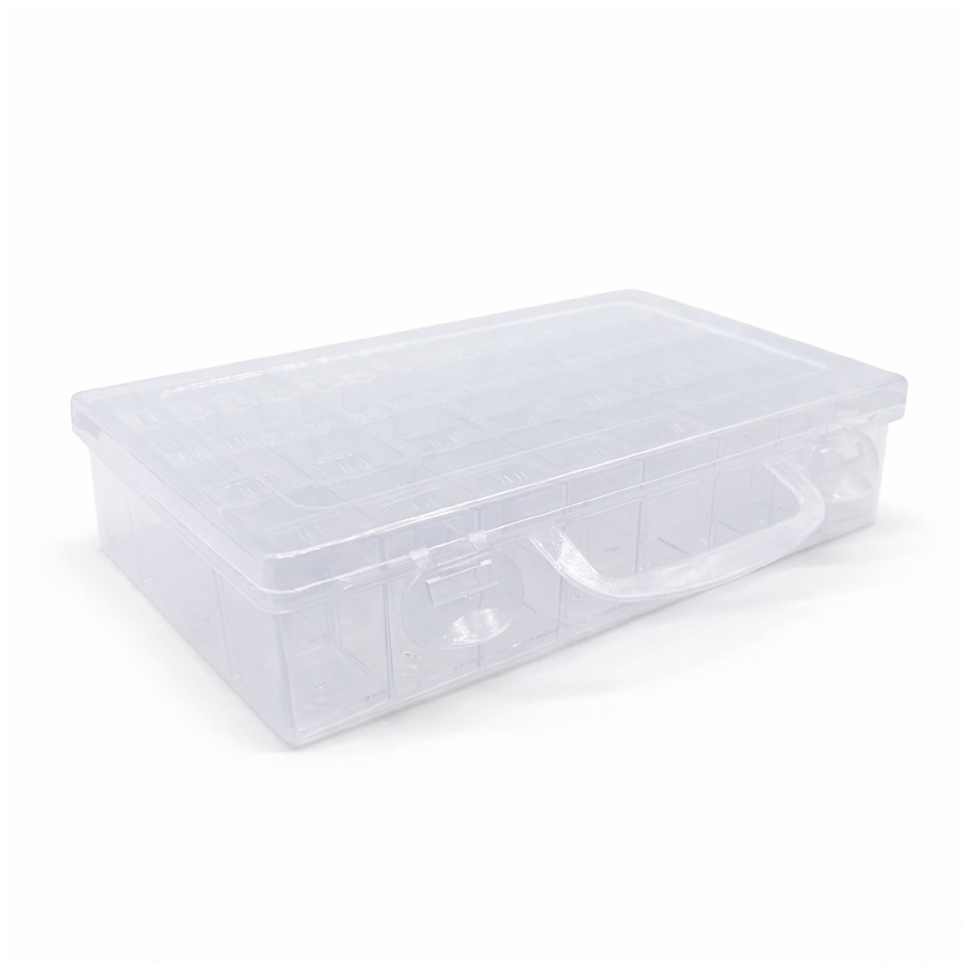 A caixa organizadora transparente é a solução prática para quem busca organização visual, acesso rápido e aproveitamento de espaço. Fabricada em plástico resistente e totalmente transparente, permite identificar o conteúdo sem precisar abrir. Possui divisórias internas individuais com tampas, fechamento seguro e alça integrada, ideal para transporte no dia a dia.