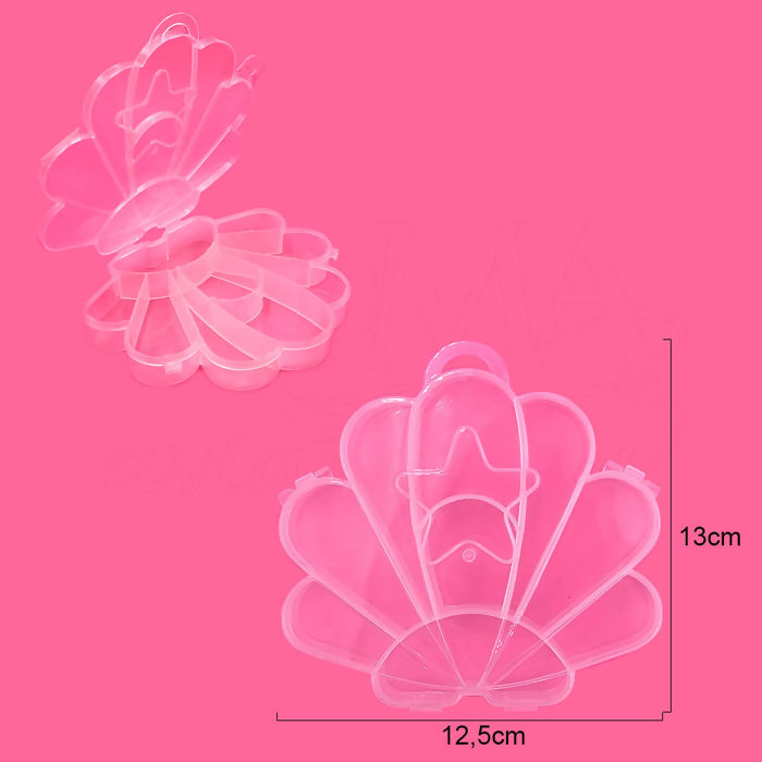 Aqui na Roma Aviamentos você encontra caixa organizadora concha com 9 divisórias. Ideal para guardar e organizar, pérolas, botões, linhas, alfinetes e outros materiais pequenos.