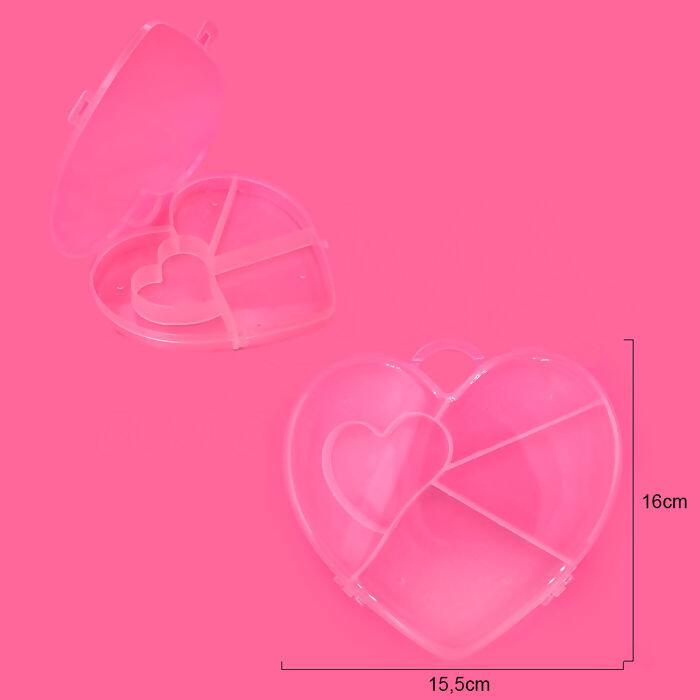Caixa organizadora coração - 15,5cm x 16cm - 5 divisórias - Transparente - UT.833
